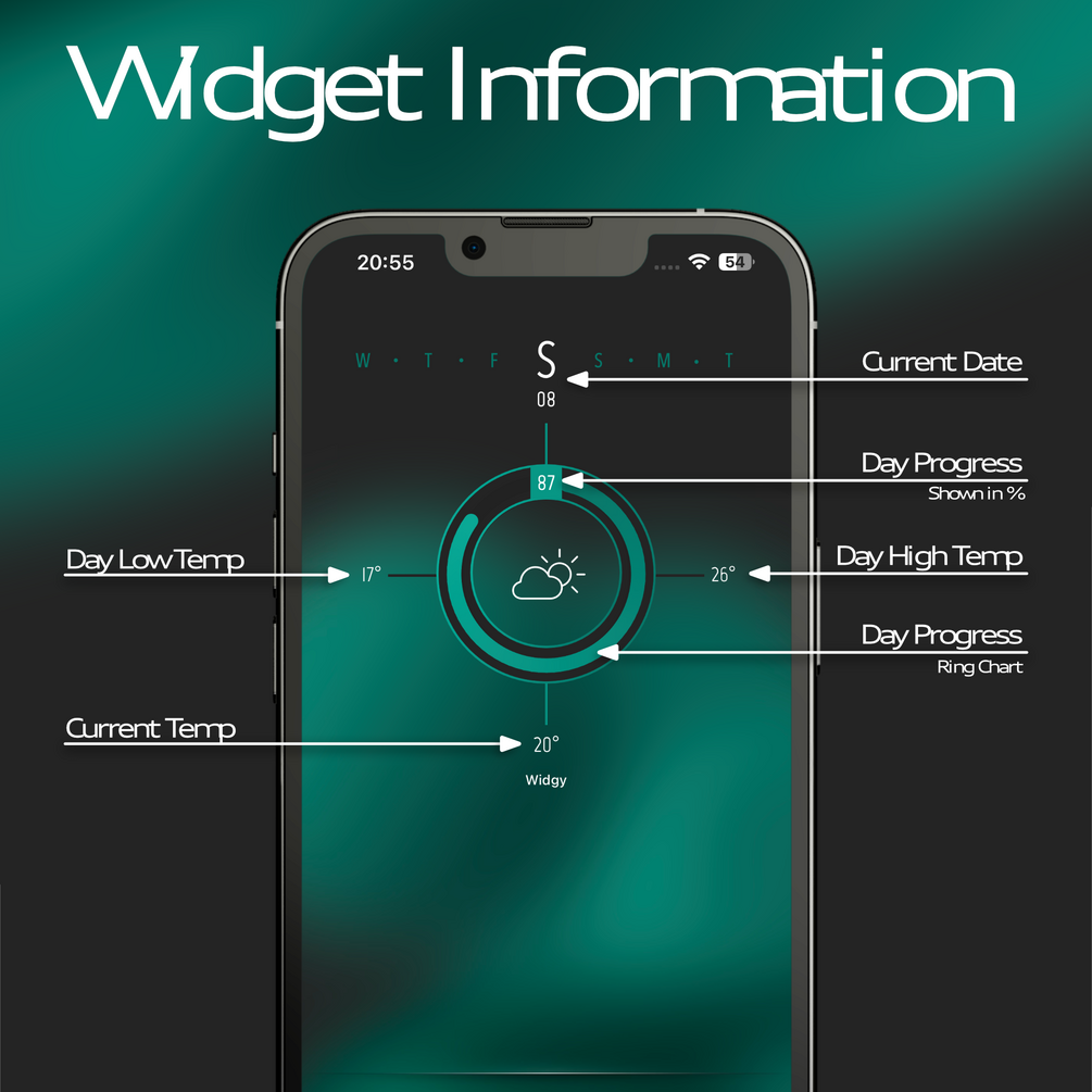 The compass underneath is a Ring Chart which shows the current days progress. The ring chart will fill as the day progresses, with the day percent shown at the top of the ring.