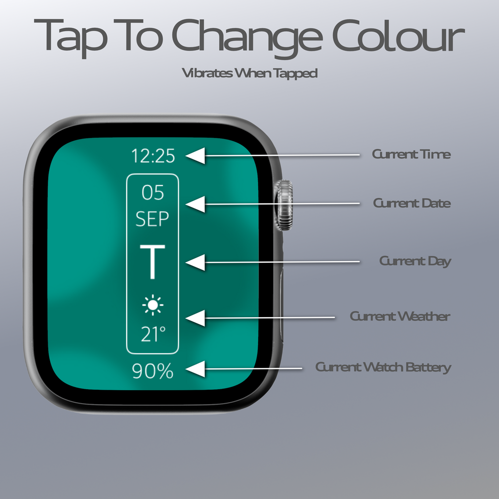 Tap the watch face to cycle between 8 colours!