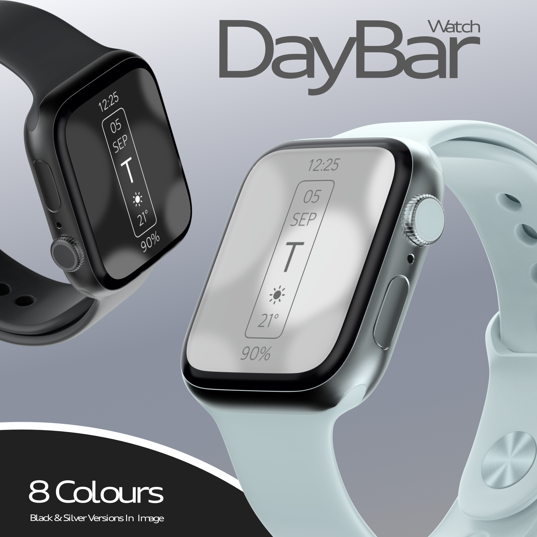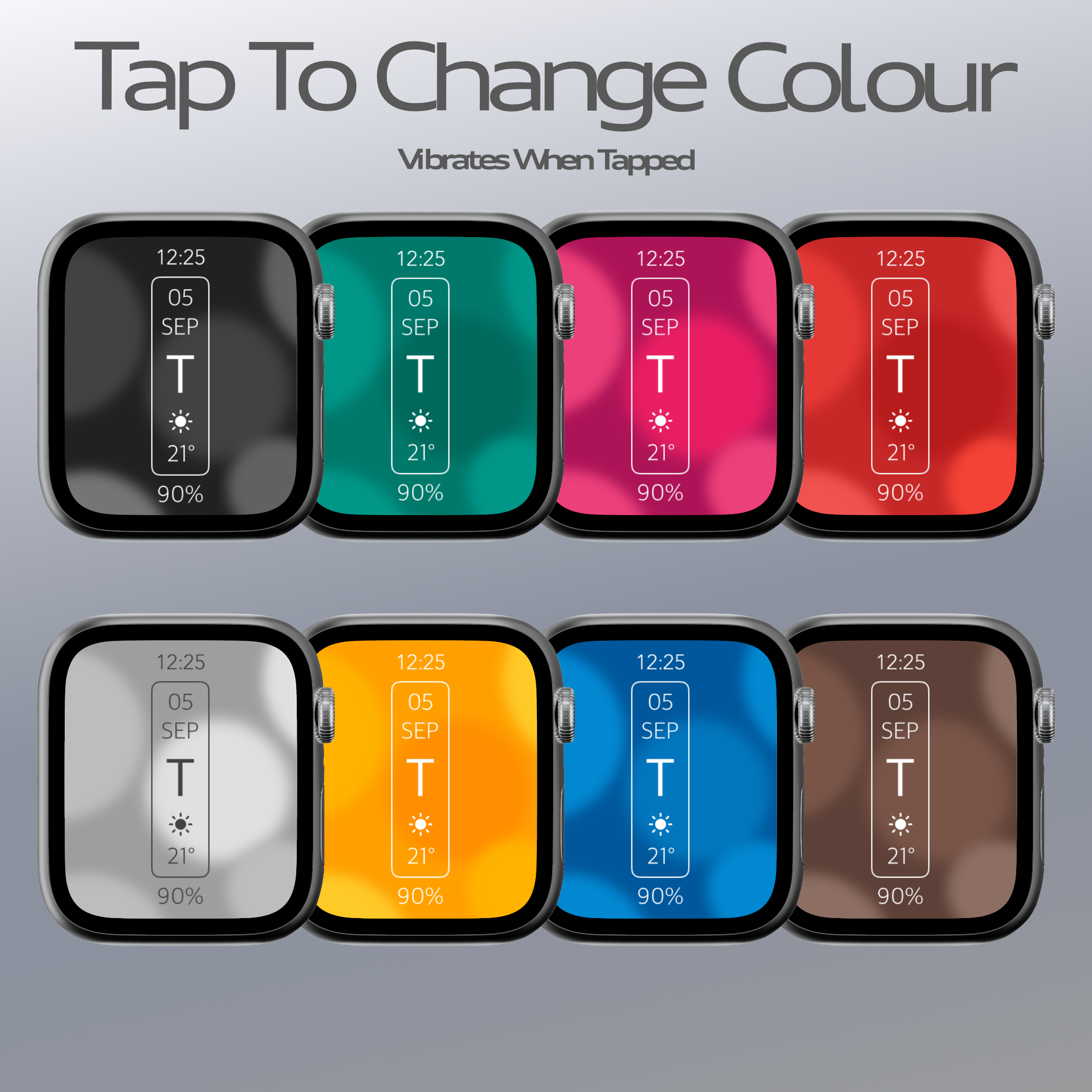 An Apple Watch widget, which shows you the current time, date, weather and watch battery percentage.