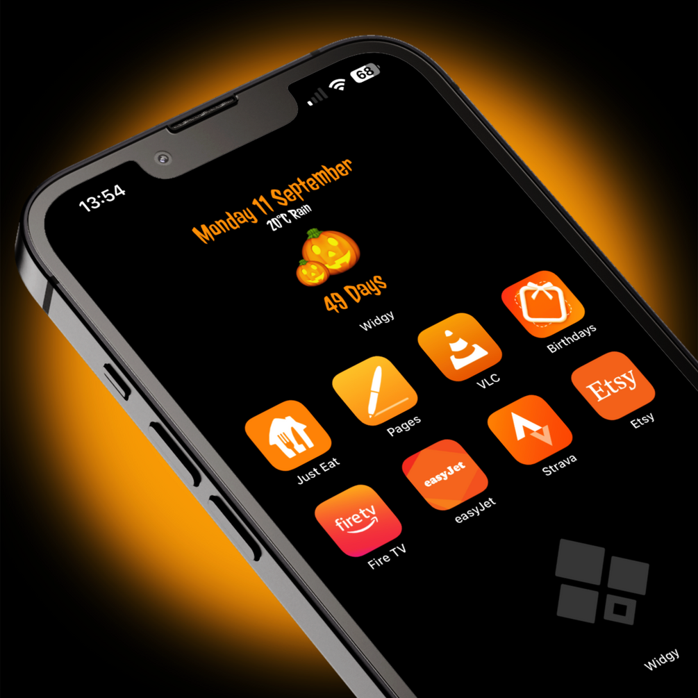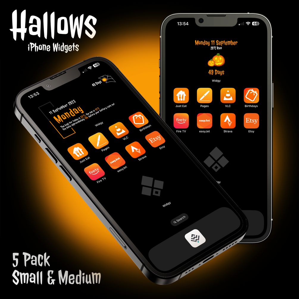 5 FREE Halloween themed widgets for your iPhone, showing a countdown until Halloween 2023 (October 31st).