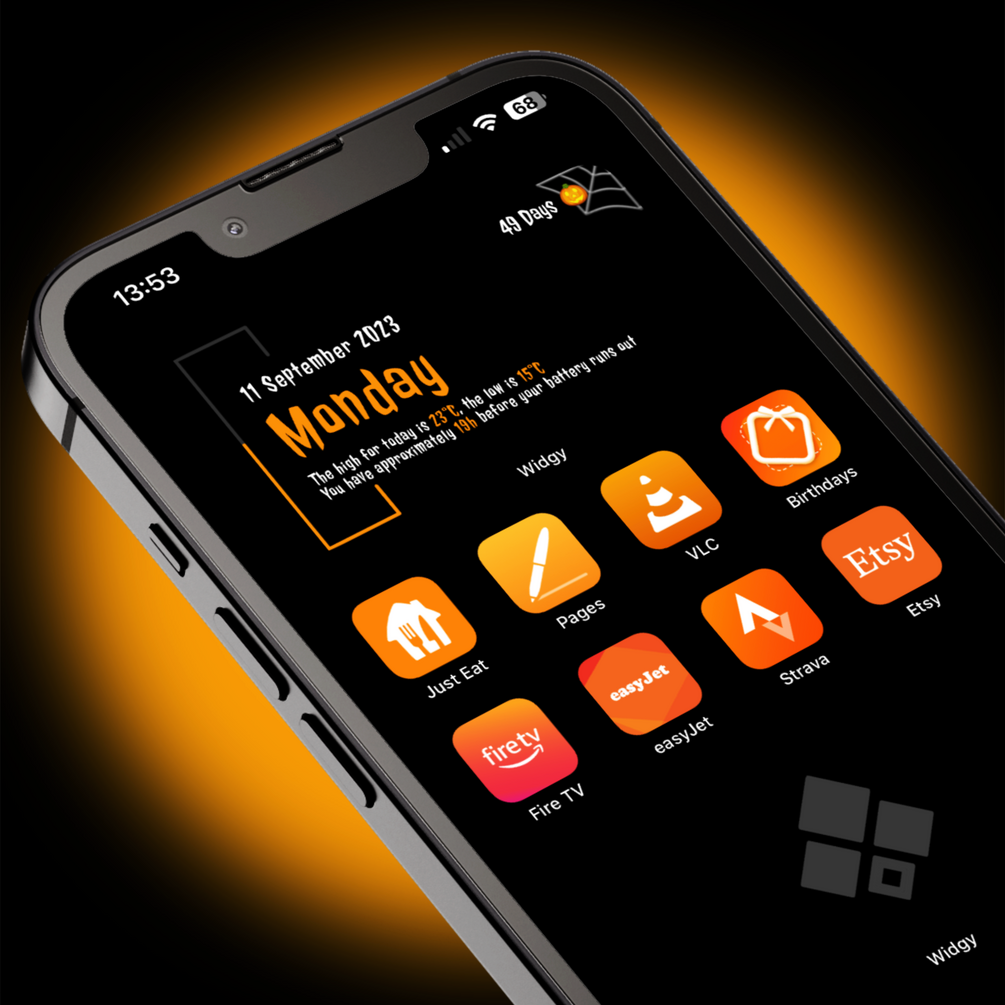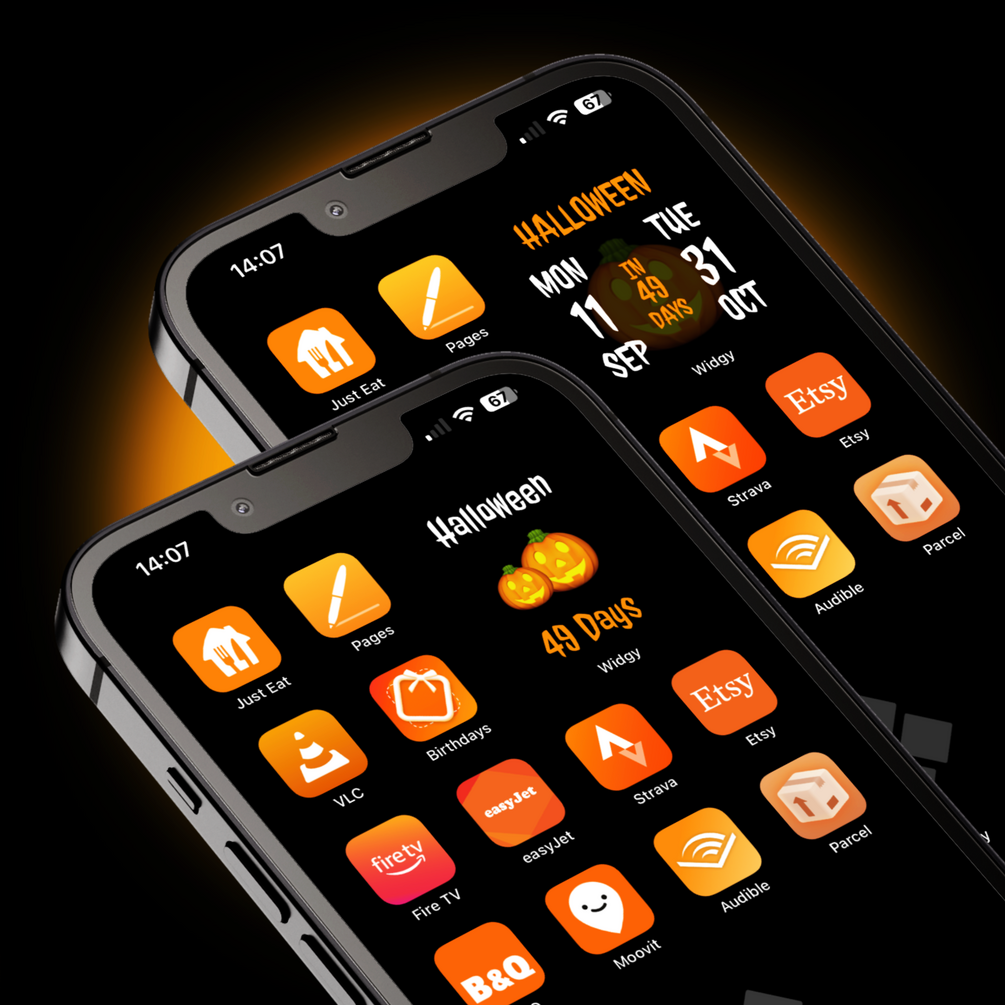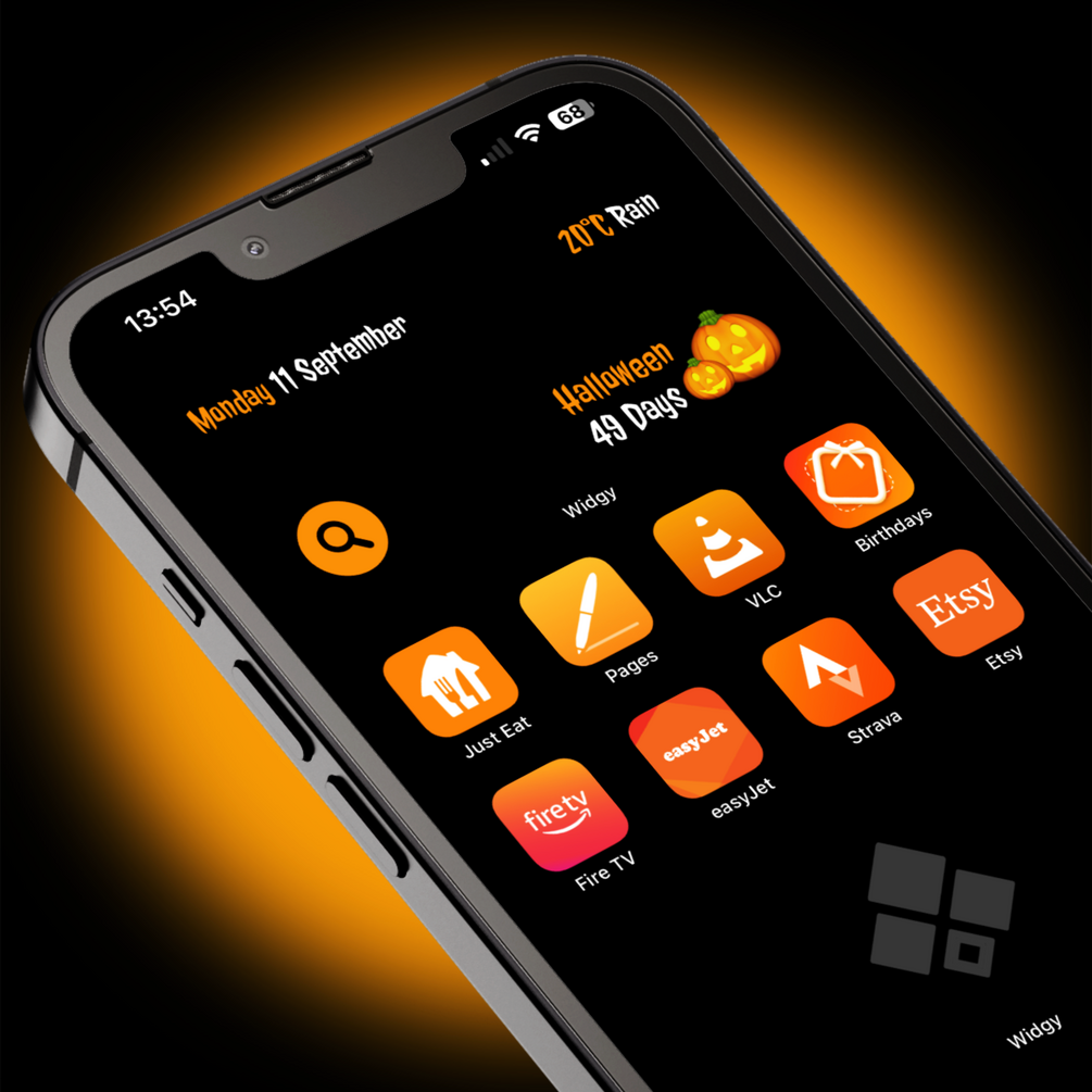 5 FREE Halloween themed widgets for your iPhone, showing a countdown until Halloween 2023 (October 31st).