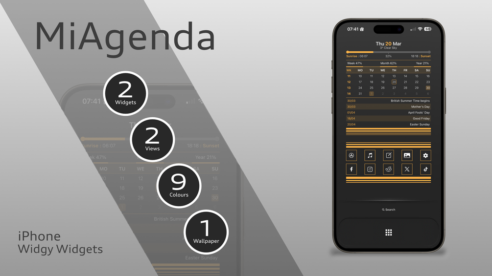 A medium widget and a large widget for your iPhone. Available in 9 Colours.