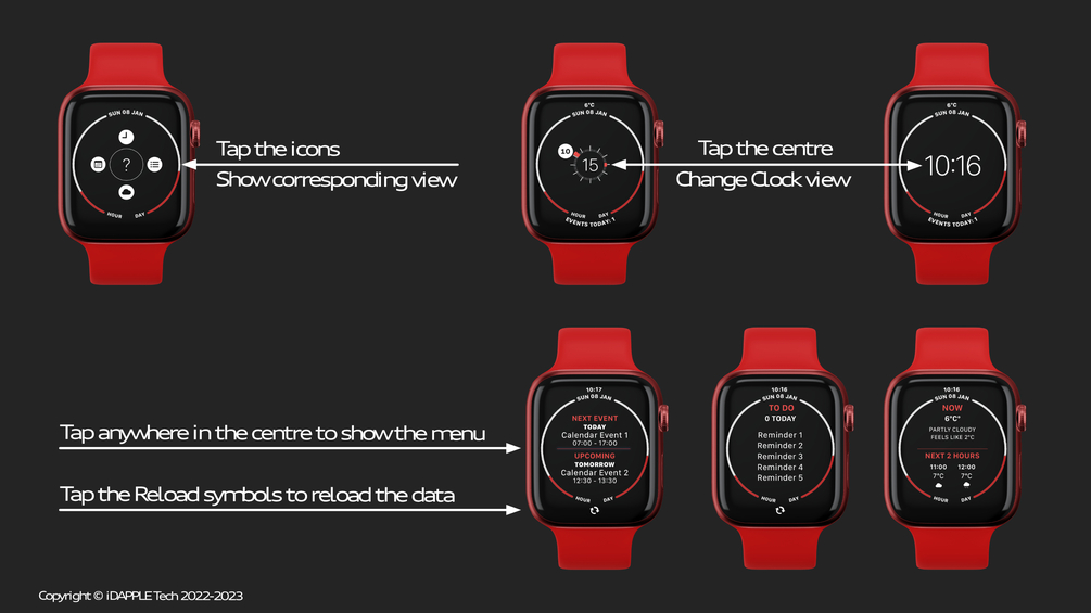 A simplistic looking, but aesthetically pleasing widget for your Apple watch, with a futuristic looking Analogue Clock.