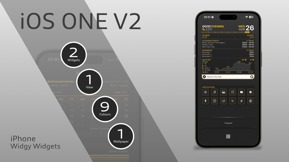 iOS ONE, one of my very first widgets, and to this day one of my most popular and my own favourites, has had an upgrade! Here's iOS ONE V2, now available in 9 colours.