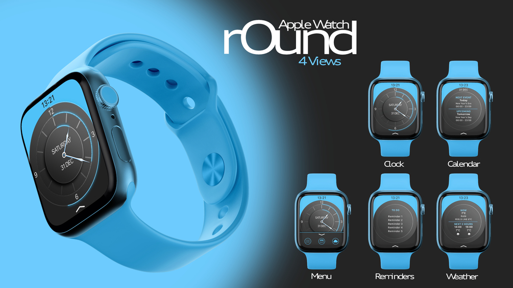 A rOund styled widget for your Apple Watch, with 4 different views, all accessed from the quick menu button located at the bottom of the screen.